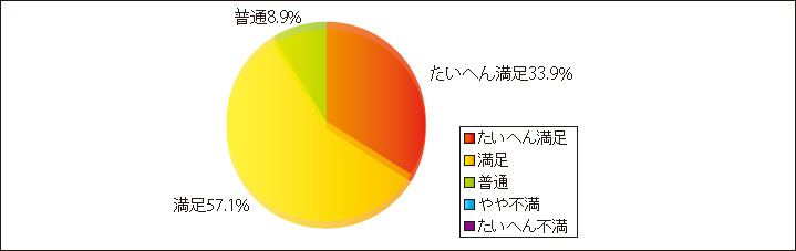 また、通所リハビリの総合的な満足度では、91.0%の方から「大変満足」(33.9%)と「満足」(57.1%)との評価を頂きました。